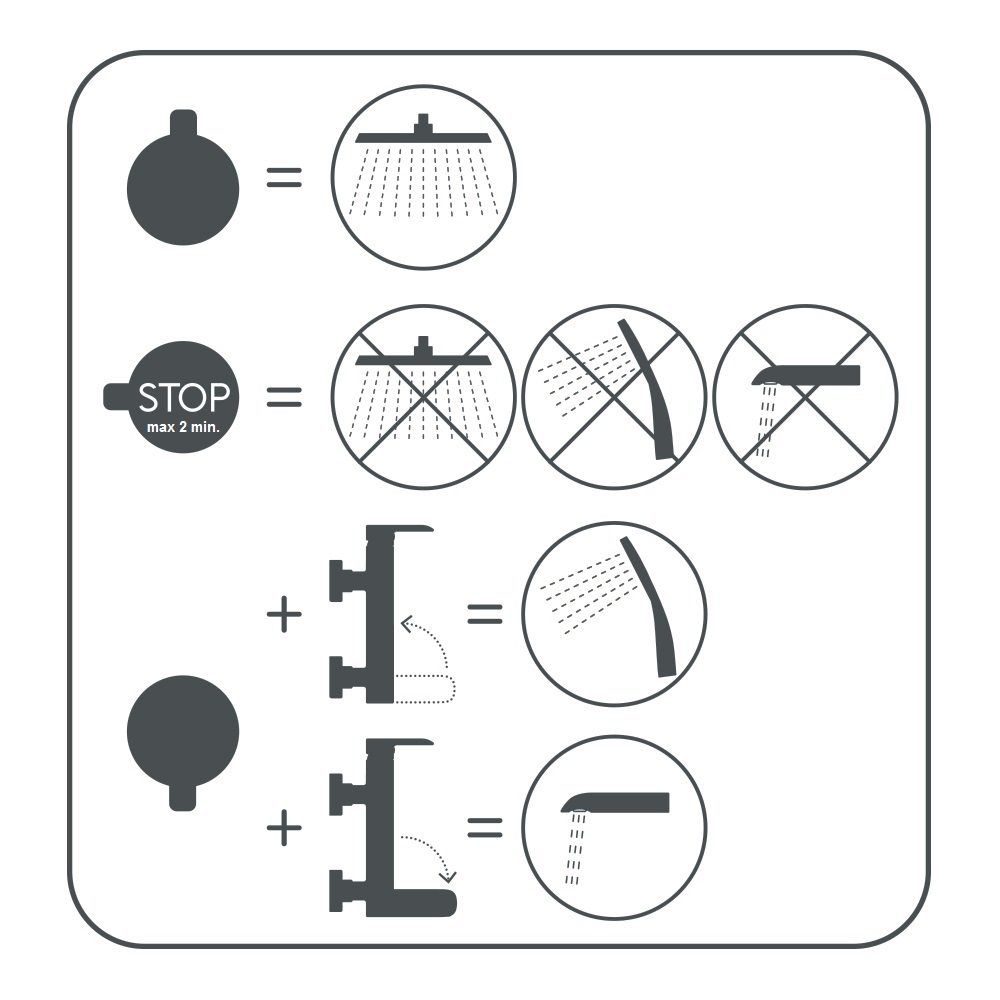 Izteka darbojas kā novirzītājs: pagriežot, ūdens var plūst caur dušas galvu vai jaucējkrāna izteku.