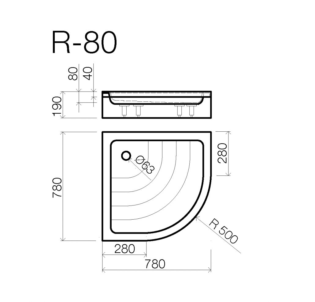 Dušas paliktnis R-80 ar perfekti glancētu virsmu.