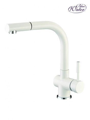 BLUE WATER LIRA-WHITE virtuves jaucējkrāns ar izvelkamu dušu, balts, spīdīgs