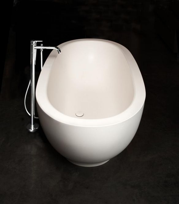 Pamatīga brīvstāvošā vanna. Izgatavota no Silkstone – cēla un ilgmūžīga materiāla. Cieta kā akmens ar matēti zīdainu, siltu virsmu. Apstrādāta ar rokām.