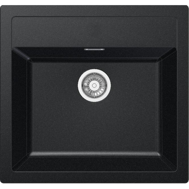 SID 610, Tektonīta izlietne, 560x530mm, Carbon (melna), iegriežama virsmā, bļodas izmērs 490x370mm un dziļums 200mm, ar 3½" ventilis ar manuālu vadību, paslēpta apaļa pārplūde izietnes sānos, 1 caurums maisītājam, komplektā ietilpst ventiļa un stiprinājumu komplekts.