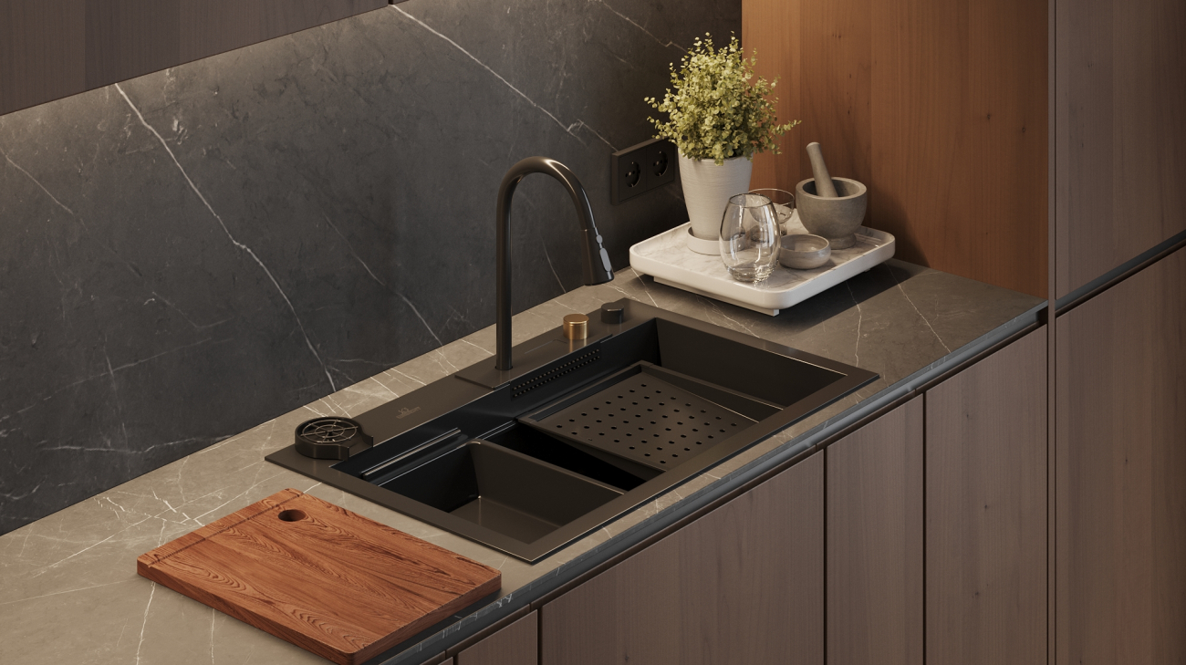 Daudzfunkcionālā virtuves izlietne no nerūsējošā tērauda kļūs par izcilu palīgu jūsu virtuvē.